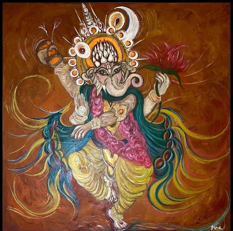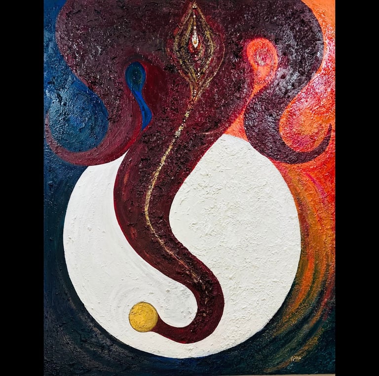 Sakaash live artwork shifts the energy of the spaces it inhabits. As each piece breathes into its environment, the blessings and mantras embedded within it subtly ripple outward, absorbed by those who engage, whether through a passing glance or intentional drishti meditation. The works serve as conduits, fostering awareness, calm, and reflection in both the ordinary and sacred rhythms of relationships, communications, message receptivity and emotional, divine conection and intuitive mapping.