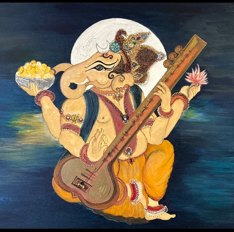 Sakaash (from Sanskrit, साकाश — saa-kaash, meaning “in presence,” “coming close,” or “held within awareness”) is a sanctuary for healing through original art, a space where memory, prayer, breath, and vibrational frequency converge with creative expression.